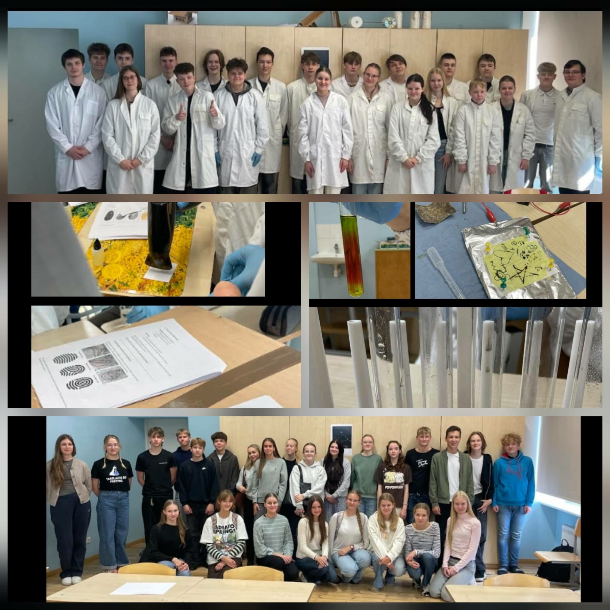 6. õpikoda – Kriminalistika (10.03.2026) Lahendati „kuriteopaiga müsteeriumit“ – analüüsiti sõrmejälgi ja jalajälgi ning määrati katsete abil „mõrvarelv“.