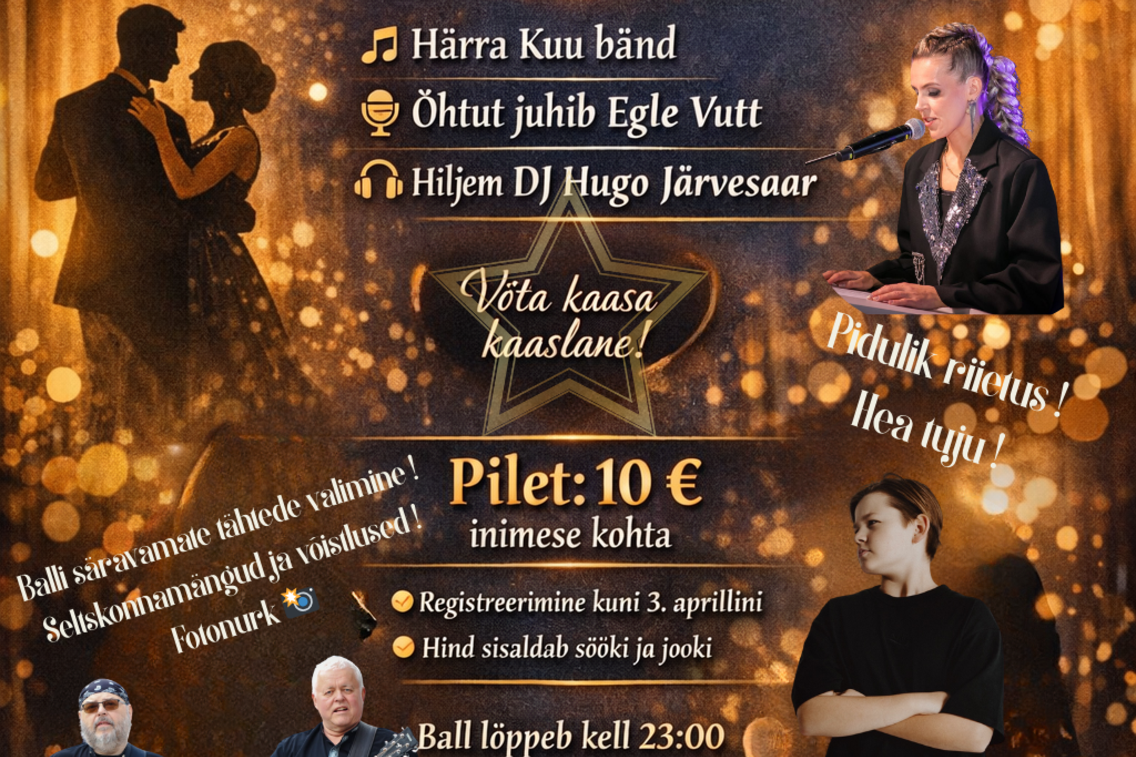 Õhtu muusikalise meeleolu loob Härra Kuu bänd, sündmust juhib Egle Vutt ning hiljem hoolitseb tantsumuusika eest DJ Hugo Järvesaar. Kavas on ka seltskonnamängud, võistlused ja fotonurk, et õhtu jääks meelde nii lõbusate tegevuste kui ka toredate ühispiltide kaudu.